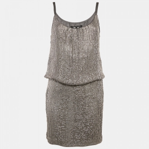 فستان دينا بار-إل قصير بدون أكمام حرير فضي مزين بالترتر مقاس صغير