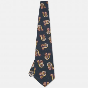 ربطة عنق كريستيان ديور حرير منقوشة زرقاء قاتمة منتصف الليل عتيقة
