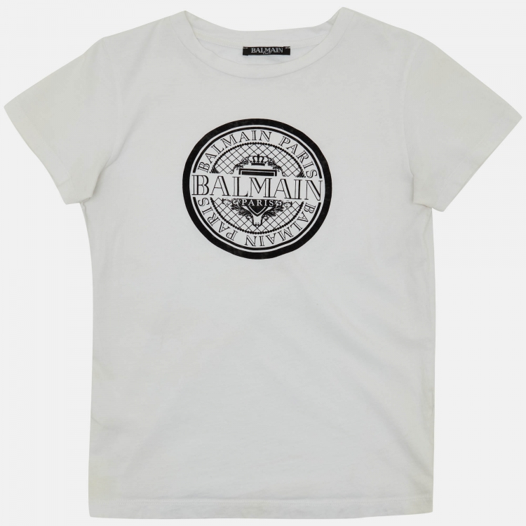 مملوكة مسبقًا تي شيرت بقطعة شعار بالمين أطفال أبيض / أسود قطن مقاس 10 سنة