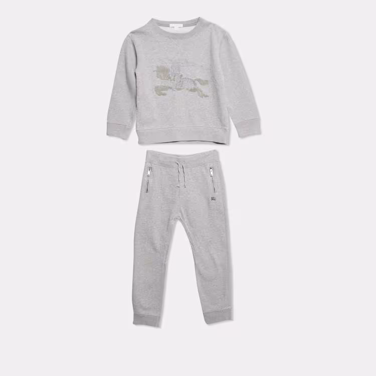 طقم سويتشرت وبنطلون قطني بنقشة شعار رمادي بربري أطفال 8 سنوات