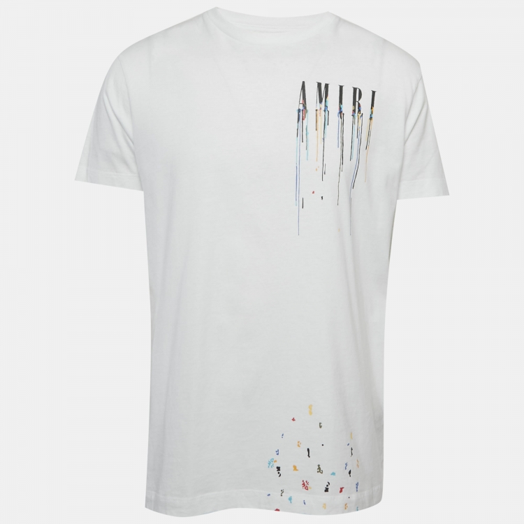 Pre Owned تي شيرت اميري قطن محبوك بتصميم طلاء أبيض مقاس متوسط