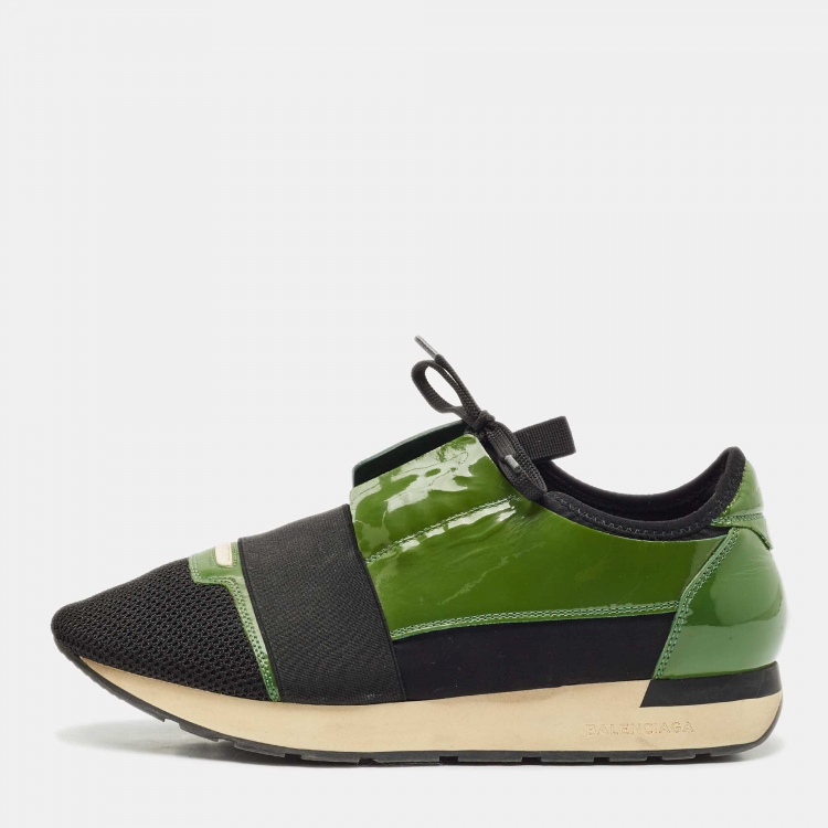 مملوكة مسبقًا حذاء رياضي بالنسياغا ريس رنر جلد براءات اختراع وشبكة أخضر وأسود مقاس 41
