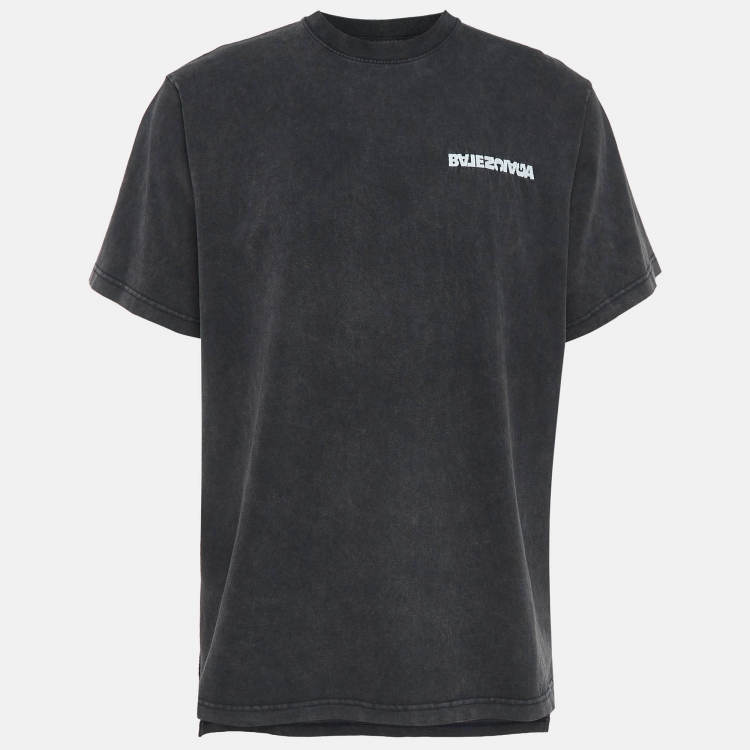 Balenciaga Grey Embroidered Cotton T-Shirt XL