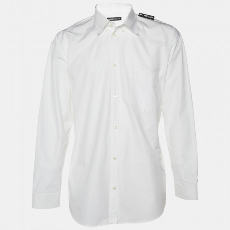 Balenciaga White Cotton Logo Detail Oversized Shirt L