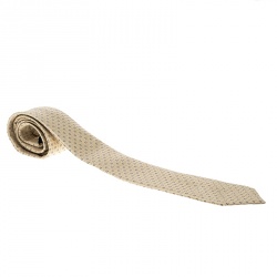 ربطة عنق بريوني جاكارد حرير بنقوش مربعات صغيرة كريمية