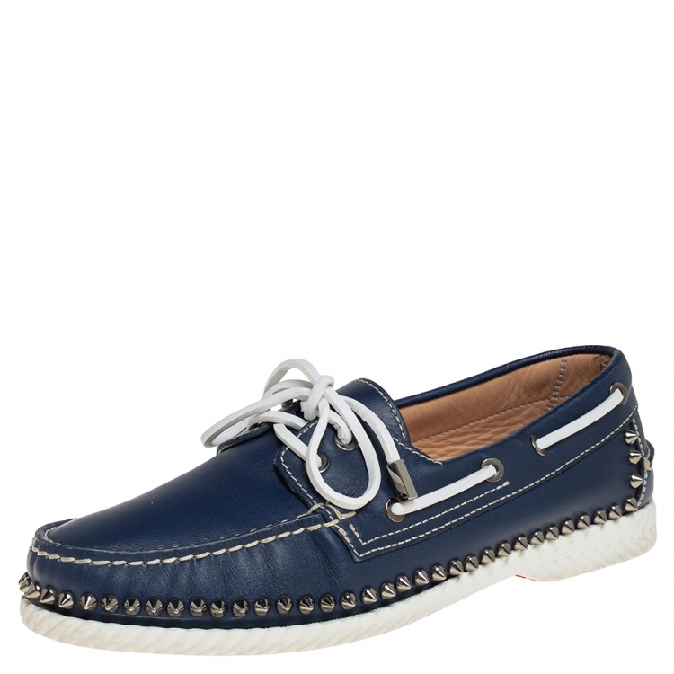 حذاء لوفرز سليب أون كريستيان لوبوتان ستكل سبايك بوت جلد أزرق مقاس 41