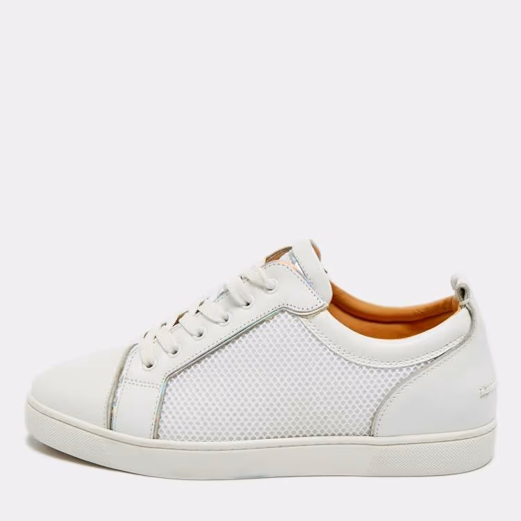 مملوكة مسبقًا حذاء رياضي كريستيان لوبوتان لويس جونيور جلد أبيض ومشبك منخفض من الأعلى مقاس 43