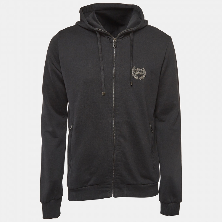 Dolce & Gabbana Black Applique Detail Cotton Knit Hooded Jacket L