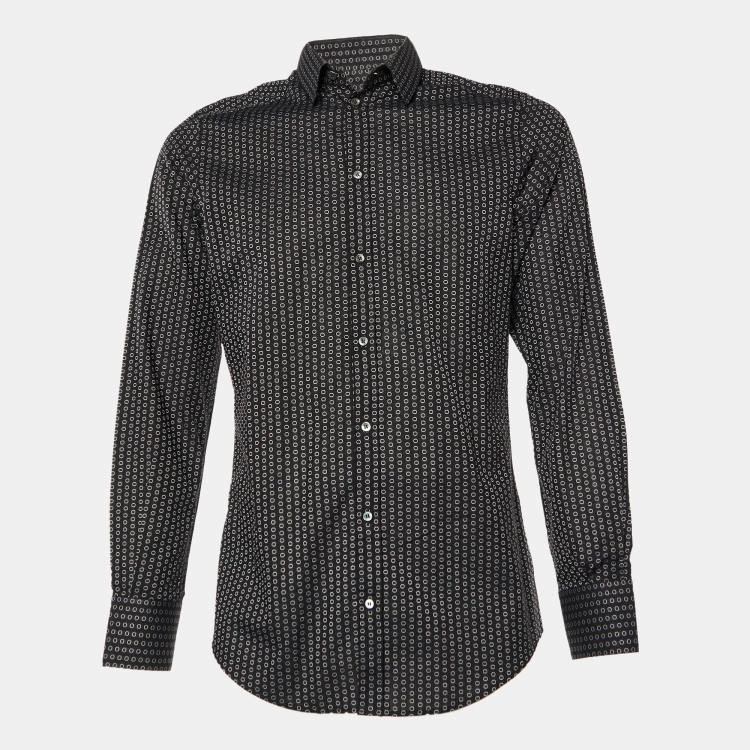 Dolce & Gabbana Black Circle Pattern Cotton Gold Fit Long Sleeve Shirt M