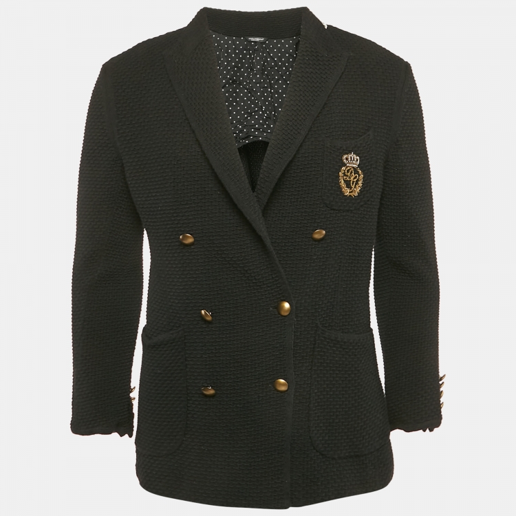 Dolce & Gabbana Black Textured Wool Double Breasted Jacket XL