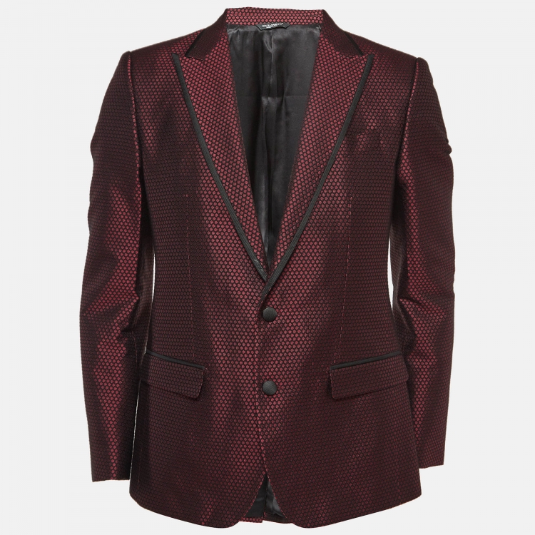 Dolce & Gabbana Burgundy Textured Jacquard Tuxedo Jacket M