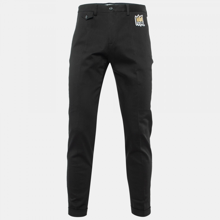 Dolce & Gabbana Black Cotton Royal Embellished Slim Fit Trousers M