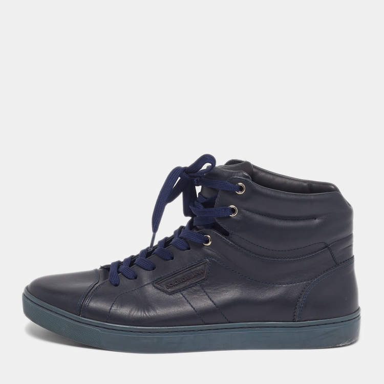 Pre Owned Dolce & Gabbana Size 43 Navy Blue Leather High Top Sneakers