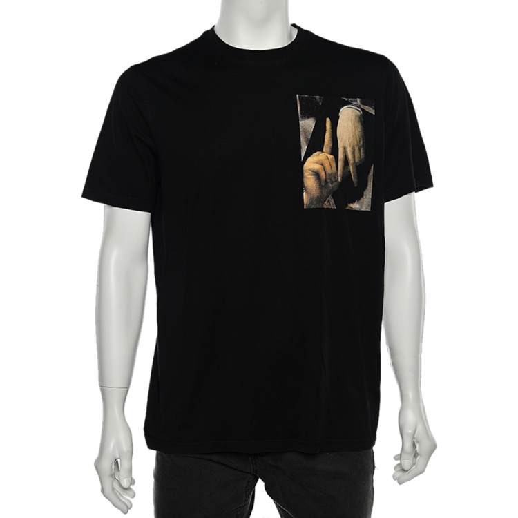 مملوكة مسبقًا �تي شيرت جيفنشي رقبة مستديرة قطن طباعة مغايرة أسود مقاس صغير