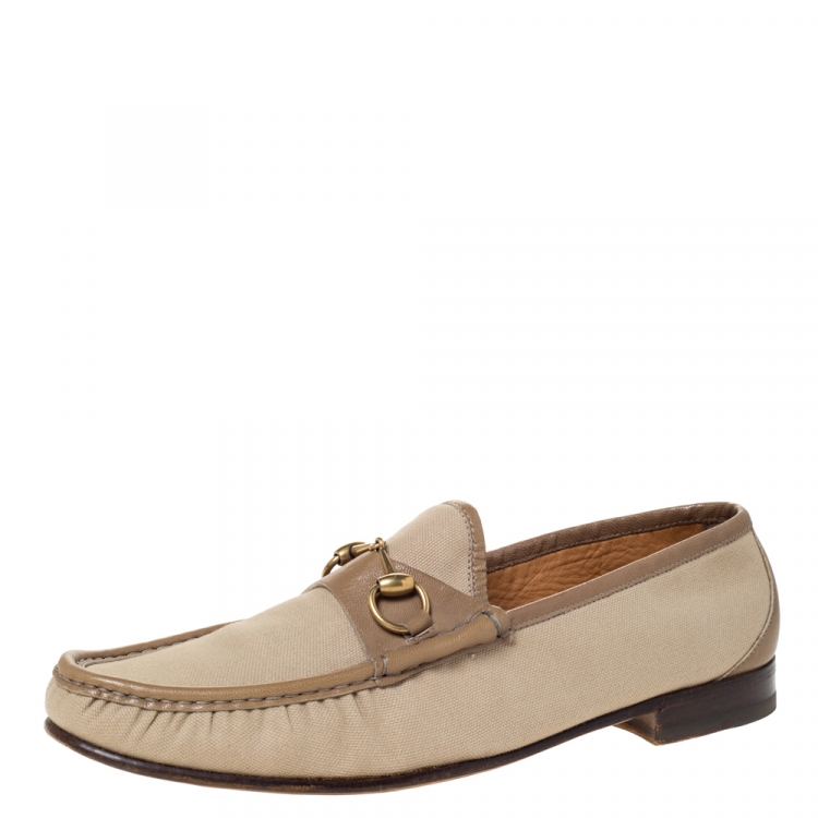حذاء لوفرز غوتشى سليب أون هورسيبت حافة جلد وكانفاس بيج مقاس 45