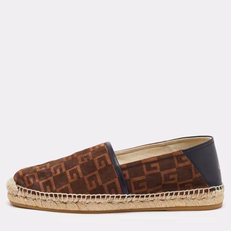 حذاء إسبادريل بدون كعب جلد سويدي وجلد غوتشي بني داكن/أسود مكعب G مقاس 43.5
