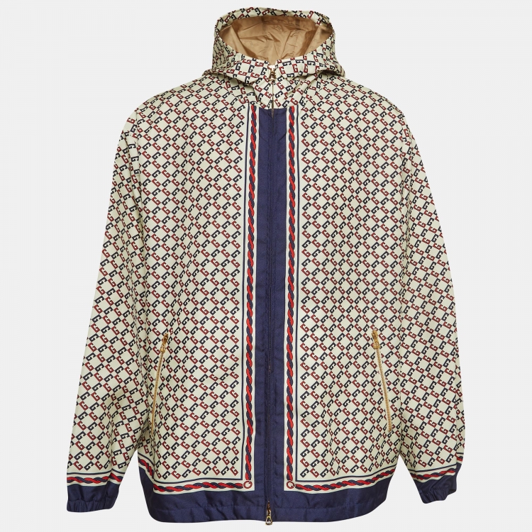 مملوكة مسبقًا Gucci Love Parade Cream Geometric GG Print Nylon Windbreaker Jacket XL