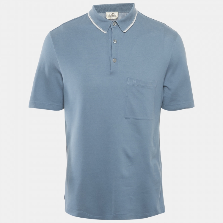 مملوكة مسبقًا تي شيرت بولو قطن بيك مطرز بشعار أزرق هيرمس مقاس متوسط