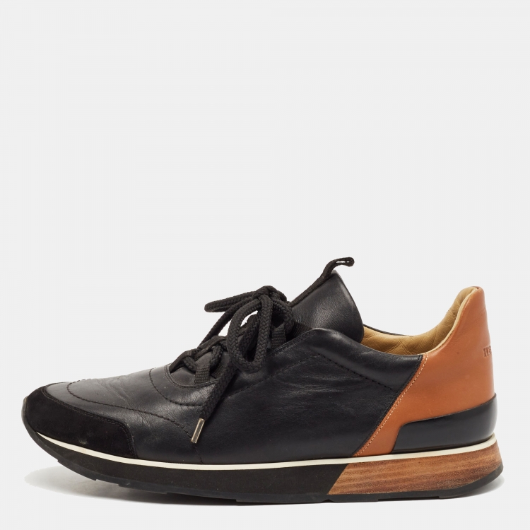 حذاء رياضي هيرمس مايلز قماش وجلد أزرق/أبيض عنق منخفض مقاس 42