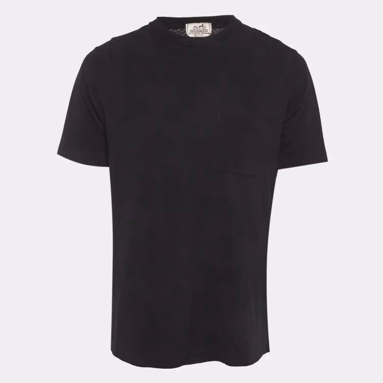 تي شيرت هيرمس قطن أسود ياقة دائرية مقاس إكسترا لارج