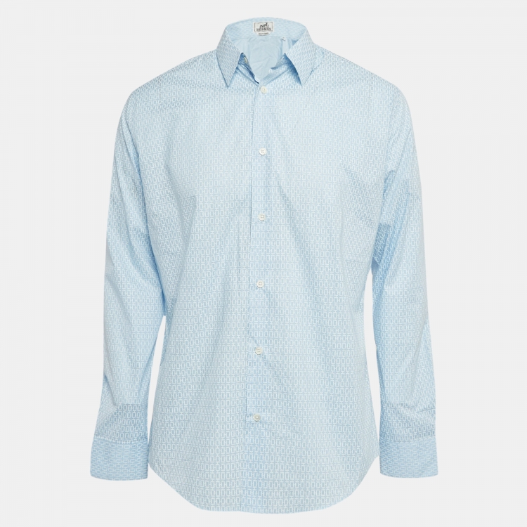 Hermes Blue Printed Cotton Long Sleeve Shirt L