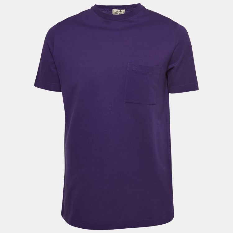 Pre Owned Hermes Purple Cotton Pique Round Neck T-Shirt M