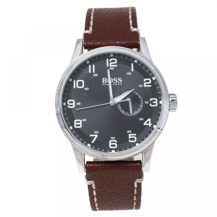 مملوكة مسبقًا ساعة يد رجالية هوغو بوس HB. 88.1.14.2430 ستانلس ستيل وجلد سوداء 45 مم