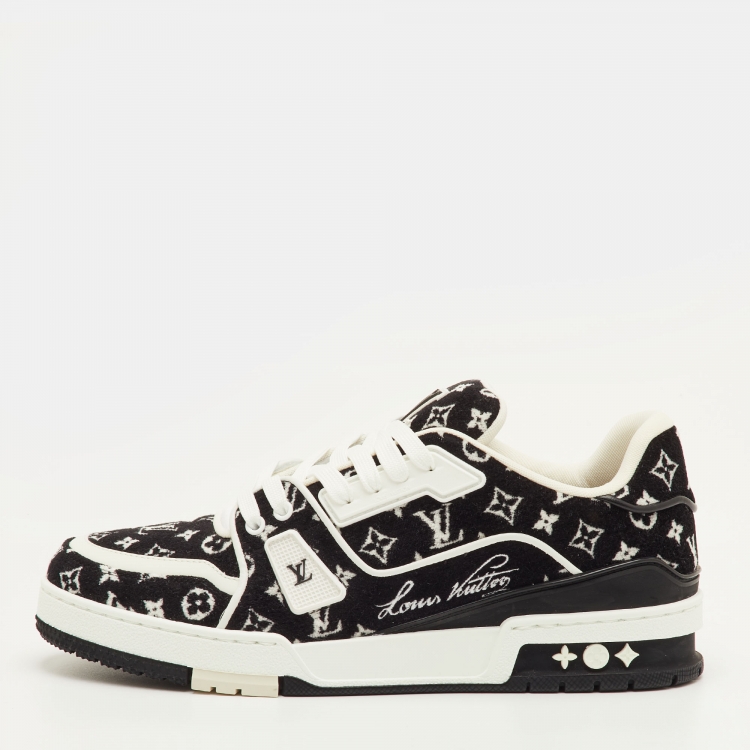 حذاء رياضي لويس فيتون LV ترينر جلد ومخمل مونوغرام أسود/أبيض مقاس 41