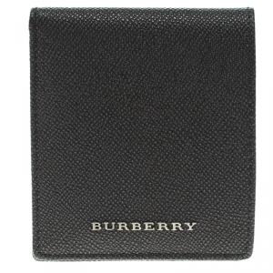 محفظة بربري جلد محبب أسود ثنائية الطي