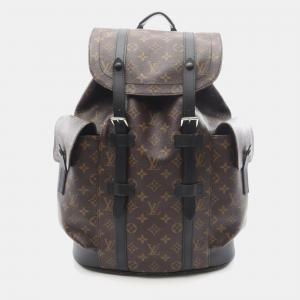 حقيبة ظهر لويس فويتون كريستوفر مقاس متوسط قماش مطلي وجلد مونوغرام ماكاسار بني أسود