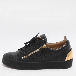 حذاء رياضي جيفنشي سبيكتر سحاب جلد أسود مثقب منخفض المقاس 40