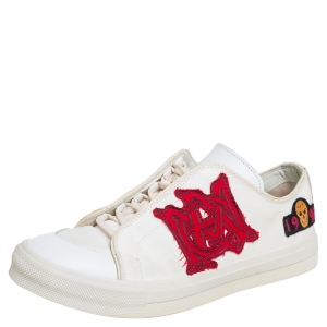حذاء رياضي أليكساندر ماكوين منخفض من أعلى رقعة كانفاس وجلد أبيض مقاس 39