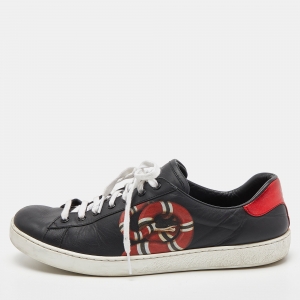 حذاء رياضي غوتشي جلد ونايلون أسود/أخضر منخفض من أعلى مقاس 46.5