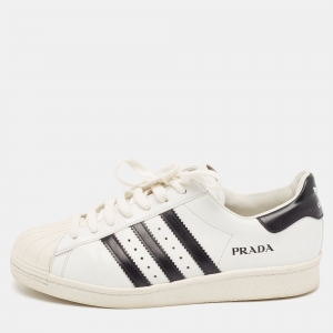 حذاء رياضي برادا جلد أبيض/أسود ماكرو منخفض من أعلى مقاس 42