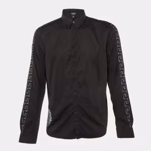 قميص فرساتشي مكسم أكمام طويلة جاكارد قطن اسود L