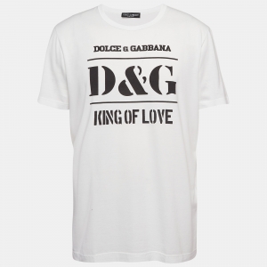 تي شيرت دولتشي أند غابانا قطن أبيض بتطريز الوردة ياقة دائرية مقاس ميديم