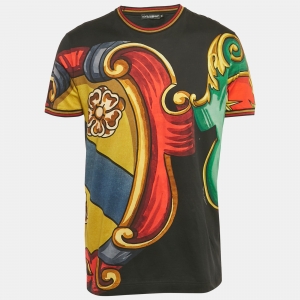 تي شيرت دولتشي آند غابانا رقبة مستديرة قطن مطبوع طائر الجنة أسود مقاس صغير (سمول)