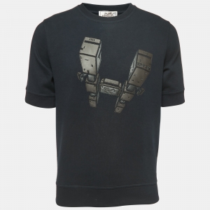 تي شيرت هيرمس جيرسي أبيض مطبوع برقبة دائرية مقاس صغير - إكس سمول