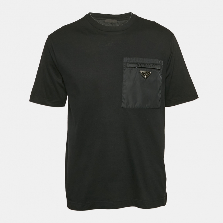 Prada Black Jersey and Re-Nylon Pocket Detail T-Shirt L