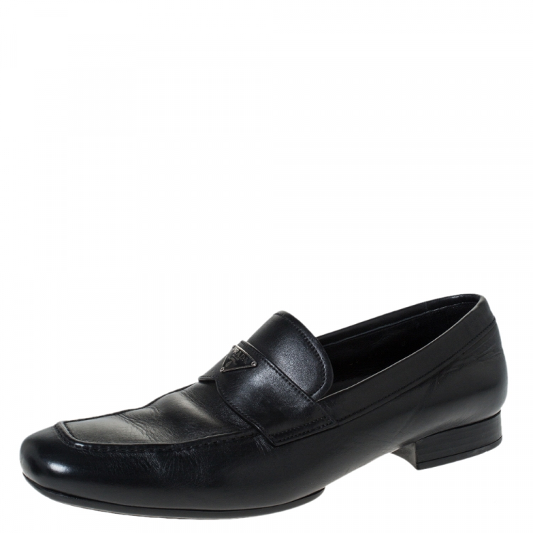 حذاء لوفرز برادا بطراز سليب أون و مزخرف بشعار الماركة جلد أسود مقاس 42