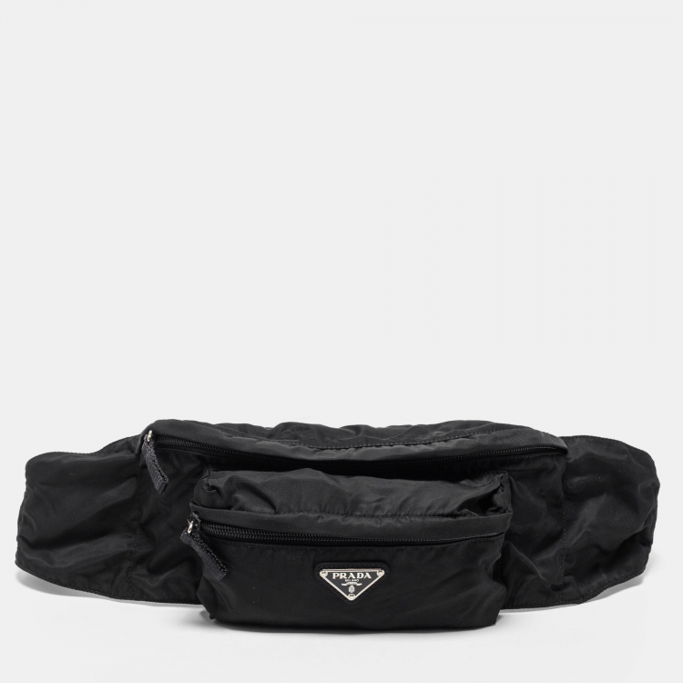 مملوكة مسبقًا Prada Black Nylon Double Zip Belt Bag