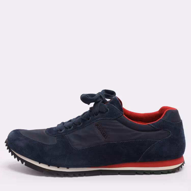 حذاء رياضي برادا نسيج نايلون وزوج أحذية سفلية من العلوي أزرق مقاس 42