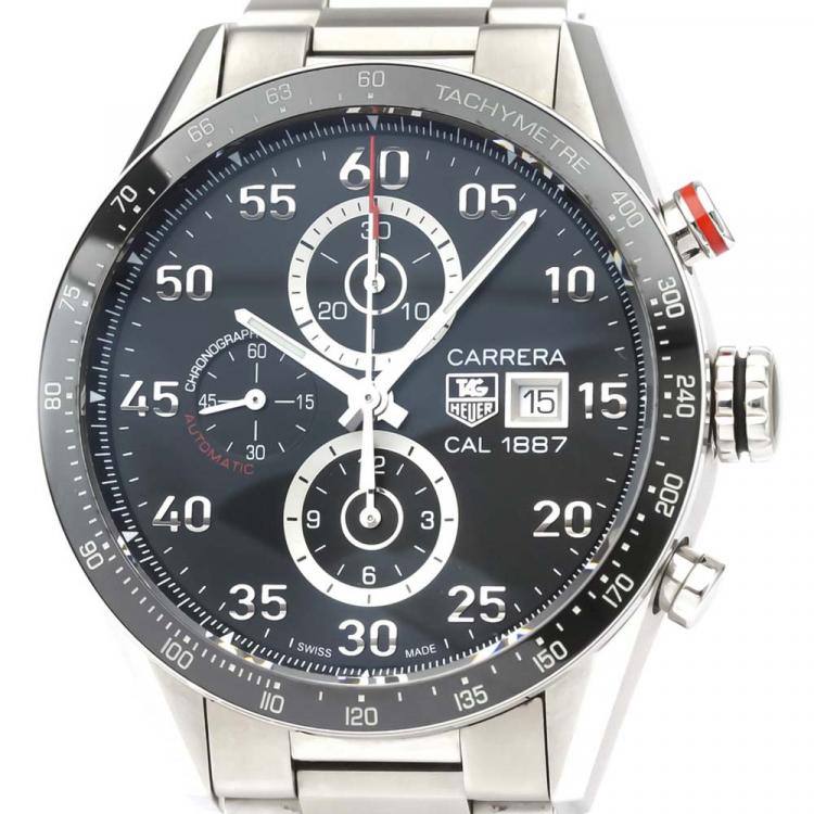 Tag Heuer Black Stainless Steel Carrera Calibre 1887 Chronograph CAR2A10 Men's Wristwatch 43 MM