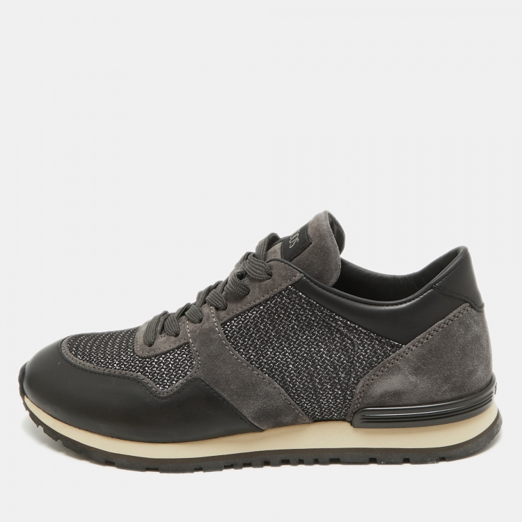 Tod's Black/Grey Leather and Suede Low Top Sneakers Size 40