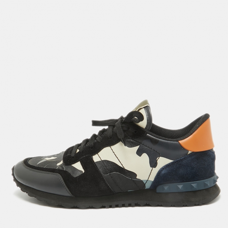 Valentino Black Canvas and Leather Rockrunner Low Top Sneakers Size 45