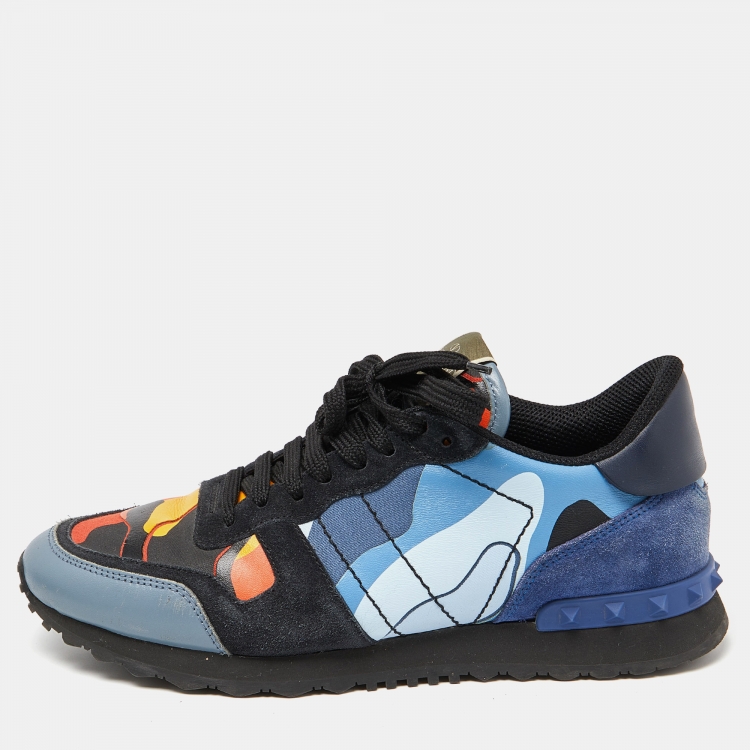 Valentino Multicolor Camo Print Canvas and Leather Rockrunner Sneakers Size 41