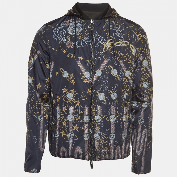 Pre Owned Valentino Navy Blue Space Print Nylon Reversable Detachable Hood Jacket S
