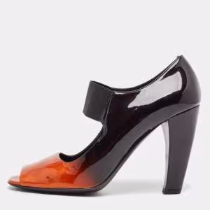 حذاء كعب عالي برادا جلد لامع بنفسجي/أسود مقدمة مدببة مقاس 39.5