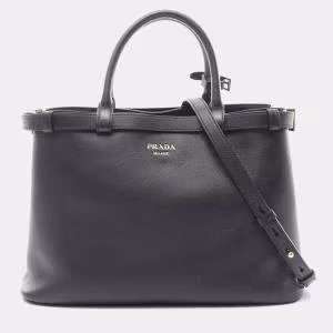 حقيبة برادا يد جلد حزام مزدوج إبزيم وسط سوداء