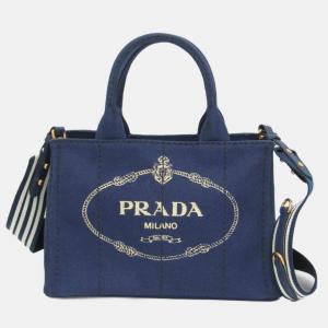 حقيبة يد برادا من قماش الكانفاس صغيرة زرقاء